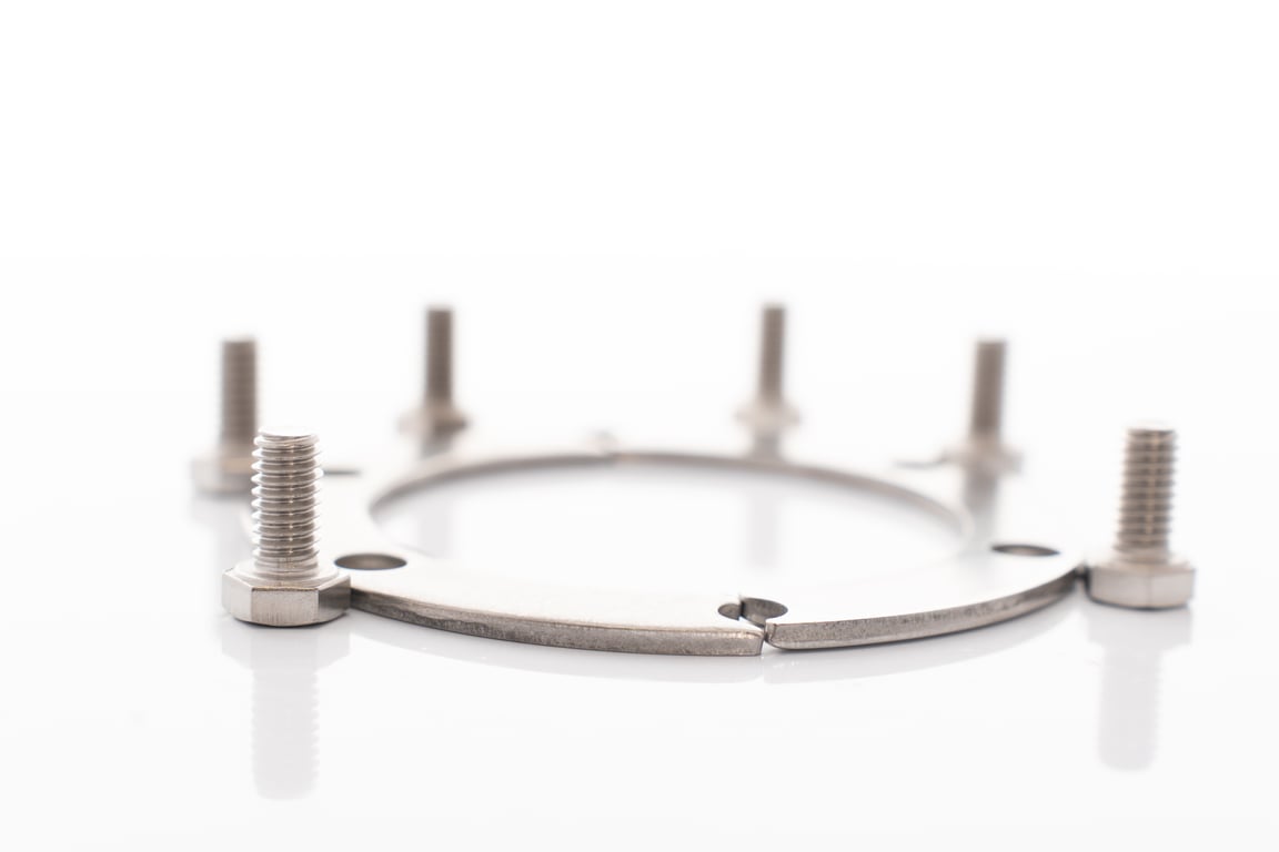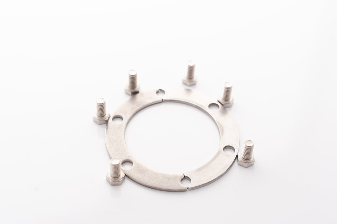 This clamp and bolt kit includes 2 clamps and 6 bolts and is used to hold T4 Turbine Housings to the bearing cartridge. PTE Part Number: PTP070-1027